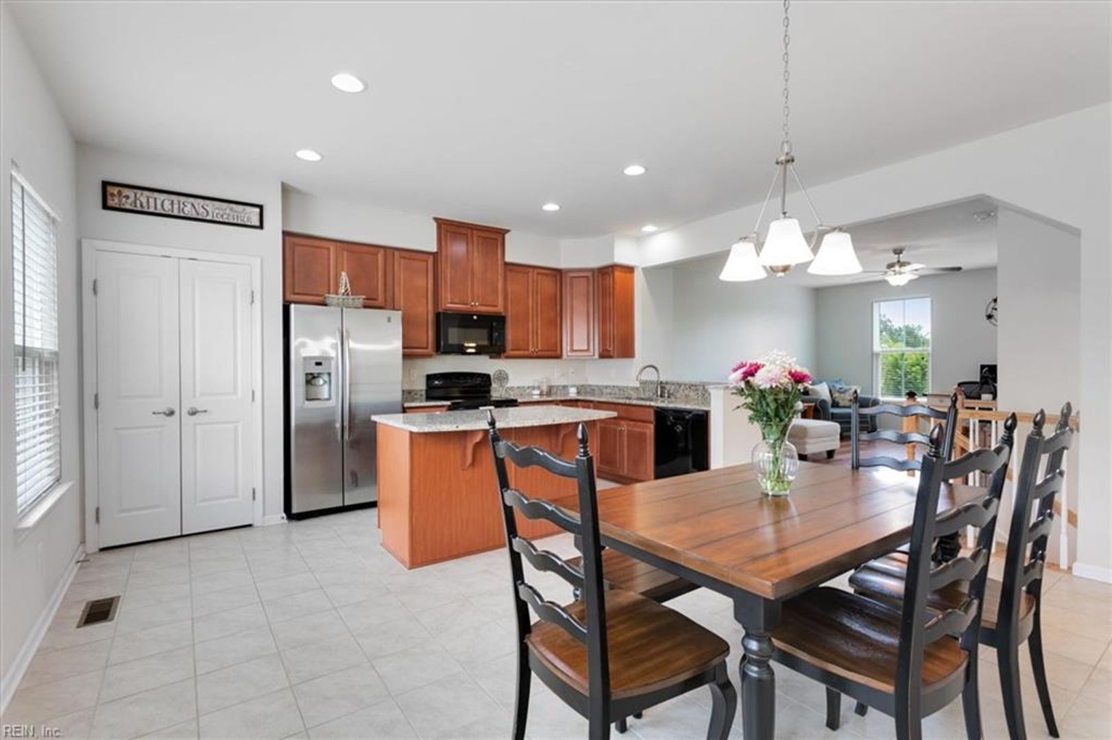 The kitchen features granite countertops & a gas range. The primary suite boasts vaulted ceilings and a large walk-in closet.